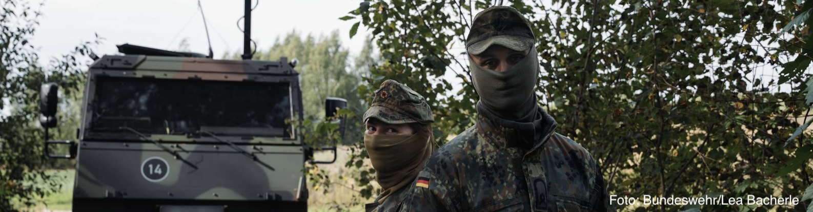 Zwei Men­schen, zwei Wege und ein gemein­sa­mer Auf­trag: Stabs­un­ter­of­fi­zier M. P. und Haupt­feld­we­bel N. F. bil­den zusam­men einen MoGe­FA­Mo­bi­les Geschütz­tes Fern­mel­de­auf­klä­rungs­fahr­zeug-Trupp. Sie arbei­ten Tag und Nacht, um ein mög­lichst detail­lier­tes Lage­bild bei der Mis­si­on Vigi­lant Owl in Litau­en zu gene­rie­ren.