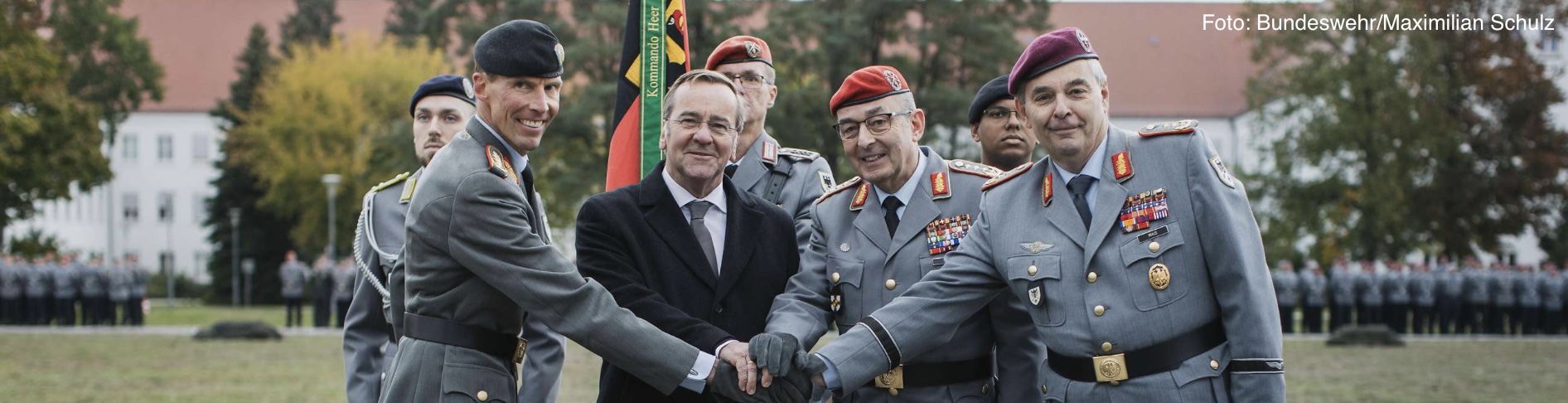 Im Rahmen eines feierlichen Appells von Abordnungen des Kommandos Heer, der 1. und 10. Panzerdivision, der Division Schnelle Kräfte, der Heimatschutzdivision sowie der Deutschen Anteile bei den Multinationalen Korps, des Ausbildungskommandos und des Amts für Heeresentwicklung am 1. Oktober auf dem Paradeplatz in der Von-Hardenberg-Kaserne in Strausberg hat der Generalinspekteur der Bundeswehr, General Carsten Breuer im Beisein des Bundesministers der Verteidigung, Boris Pistorius sowie von zahlreichen Gästen aus Politik und Militär das Kommando über das Deutsche Heer sowie die Aufgaben des Inspekteurs des Heeres (InspH) von Generalleutnant Alfons Mais an Generalleutnant Dr. Christian Freuding übergeben.