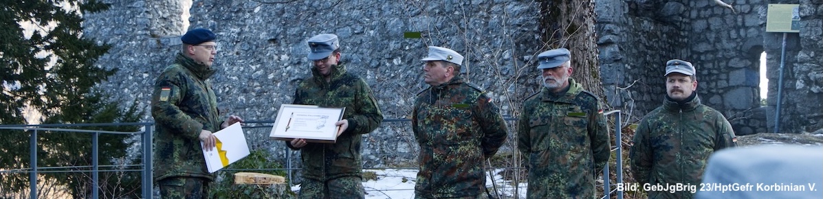 Am 16. Januar 2026 händigte Brigadegeneral Rainer Simon, Stellvertretender Abteilungsleiter „Operationen“ im Kommando Cyber- und Informationsraum sowie J6 der Bundeswehr, in Bad Reichenhall bei einem Antreten der St/FmKp GebJgBrig 23 die Urkunde zum General-Fellgiebel-Preis 2025 an Oberleutnant René S., Oberstabsfeldwebel Dirk S. und Hauptfeldwebel Richard M. aus.