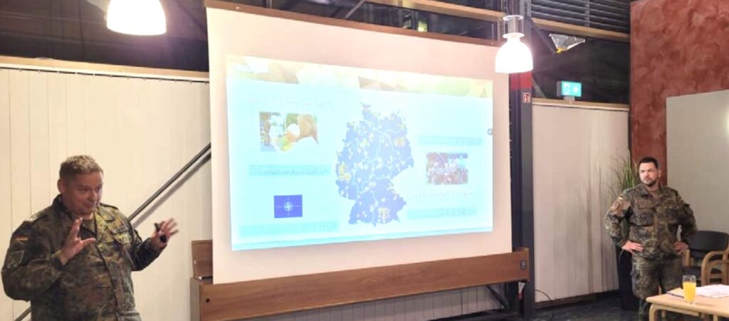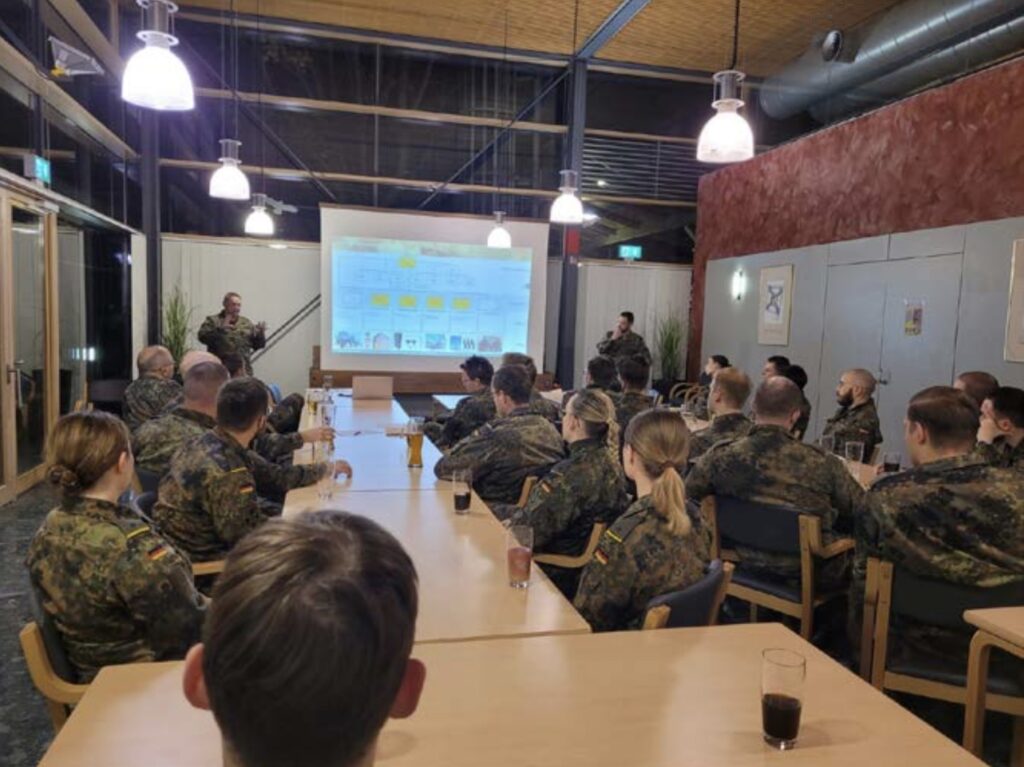 Den Abend selbst lei­te­te Oberstlt S. per­sön­lich ein und stell­te den Auf­trag der mobi­len IT-Kräf­te sowie die Glie­de­rung eines IT-Batail­lons vor. Anschlie­ßend folg­te das Auf­zei­gen der geplan­ten Übun­gen und Ein­satz­ver­pflich­tun­gen für die fol­gen­den Jah­re. Die jun­gen Offi­zie­re ver­folg­ten dies mit gro­ßem Inter­es­se, da die­se, nach Abschluss ihrer Offi­zier­aus­bil­dung, selbst ein Teil hier­von sein könn­ten.