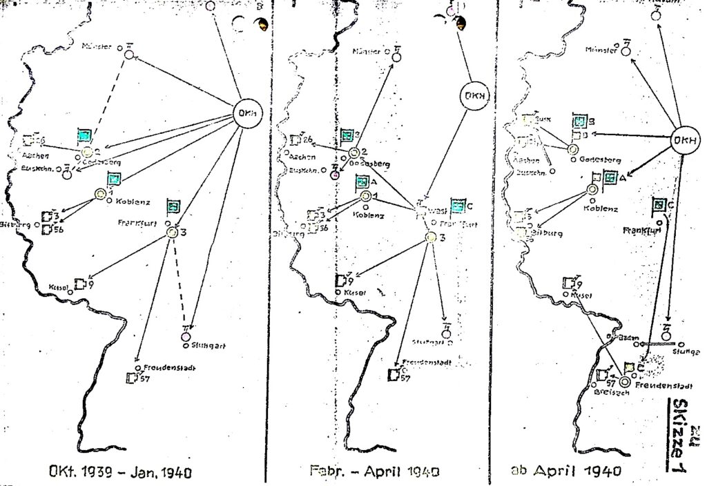 Im Rahmen der nachrichtentechnischen Unterstützung des Aufmarsches der Wehrmacht im Westen für den beabsichtigten Angriff auf die Niederlande, Luxemburg, Belgien und Frankreich waren auch Planungen und Vorbereitungen für mehrere stationäre „Führerhauptquartiere“ („FHQ“) durchgeführt worden, die sich aber dann ab Mitte Februar 1940 auf lediglich noch das „FHQ Felsennest“ bei (Bad) Münstereifel konzentrierten, da der nachrichtentechnische Anschluß des ursprünglich favorisierten „FHQ Adlerhorst“ in Ziegenberg bei Bad Nauheim nicht vor Juni fertiggestellt werden konnte. Von diesen „FHQ“ (einschließlich „OKW-Feldstaffel“) sollten alle HGrOKdo und AOK mit jeweils vier Fernsprech- und zwei Fernschreibverbindungen („4 F + 2 T“) sowie Berlin bzw. Zossen und die „OKH-Feldstaffel“ – zunächst in Gießen [2] (mit Nachrichtenbunker „Gisela“) geplant, später tatsächlich in Bad Godesberg – mit „12 F + 6 T“ erreichbar sein.