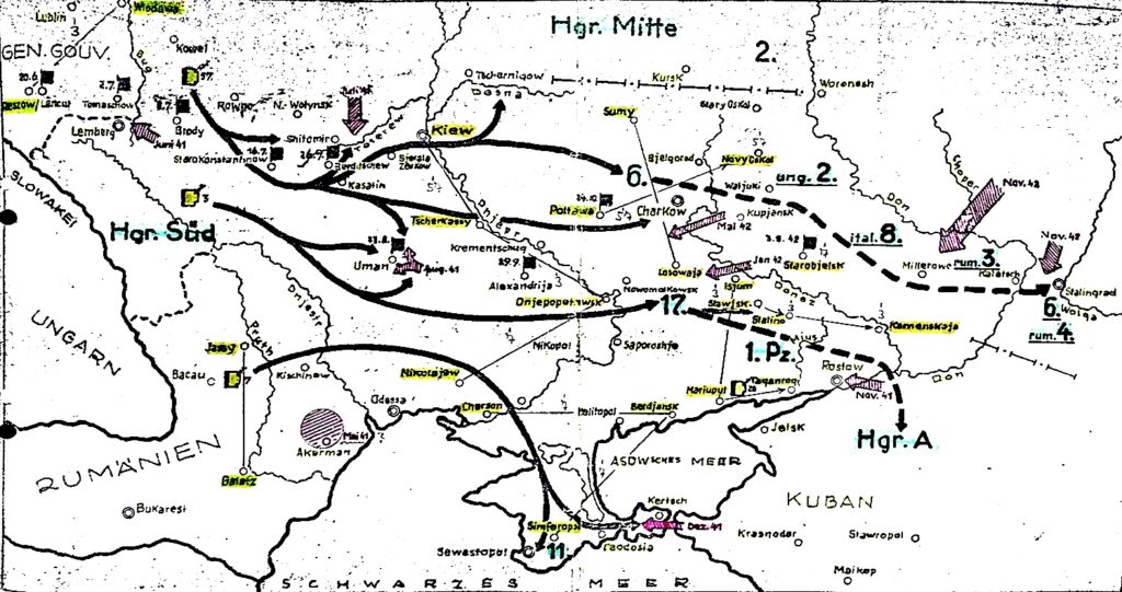 Bis Mitte November 1941 zeichneten sich dann für die Funkaufklärung im Bereich der HGr Süd zwei Brennpunkte ab: Einerseits vor 6. und 17. Armee im Raum nordost‑, ost- und südostwärts von Charkow/Charkiw, der aber zunächst nicht sicher geklärt werden konnte, andererseits vor 1. Pz-Armee im Raum ost- und südostwärts von Rostow, wo straff gegliederte Funknetze auf die Bereitstellung von bis zu 10 sowjetischen Divisionen und einen bevorstehenden Angriff schließen ließen. Ein weiteres, südwestlich von Rostow im Kuban-Gebiet erfasstes, umfangreiches sowjetisches Funknetz konnte dagegen als Versuch einer Funktäuschung zum Vortäuschen einer sowjetischen Seelandung am Nordufer des Asowschen Meeres im Rücken der 1. Pz-Armee erkannt werden. Als dann Ende November der sowjetische Angriff auf Rostow erfolgte, räumte die 1. Pz-Armee auf Befehl der HGr Süd Rostow und nahm ihren Südflügel wieder hinter den Mius-Abschnitt zurück, ohne daß jedoch die o.a. Seelandung stattfand.