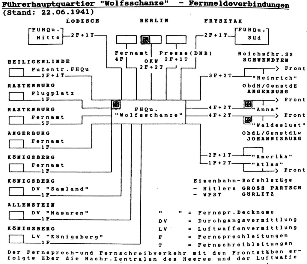 Nachrichtenverbindungen des FHQ „Wolfsschanze“ (Stand: 22.06.1941);