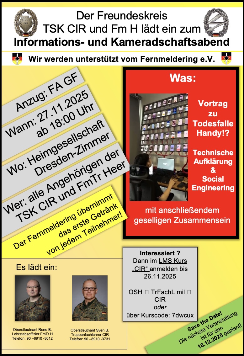 Infor­ma­ti­ons- und Kame­rad­schafts­aben­de